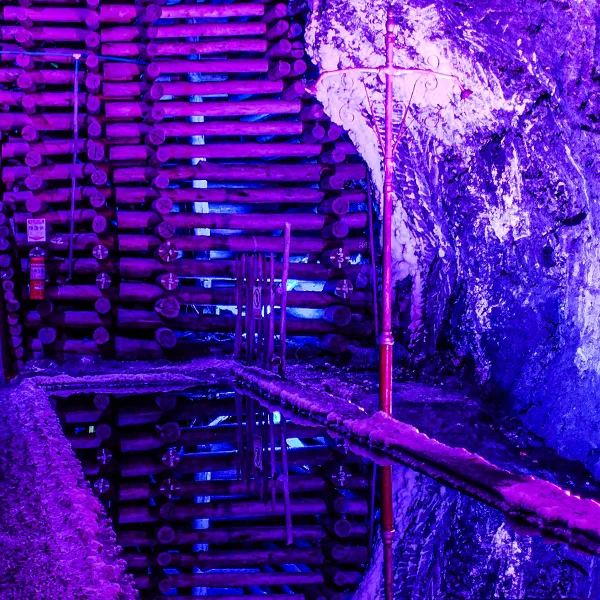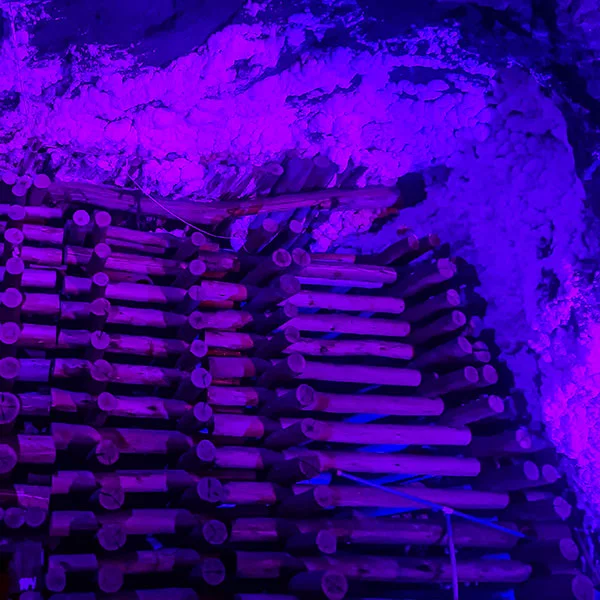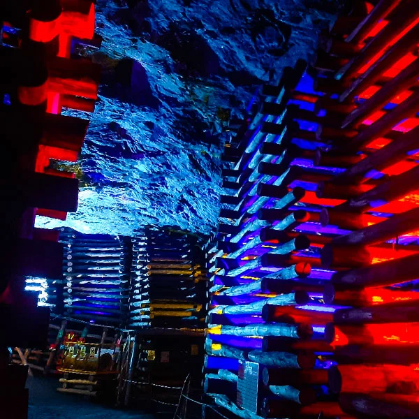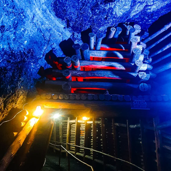 Estructura de sostenimiento construida en madera de eucalipto rollizo con diámetros entre 25 y 30 cm, con un área promedio de 3.4 metros cuadrados soportada en 4 segmentos divididos en 2 palancas laterales 1 capis superior y 1 quicio en la base.